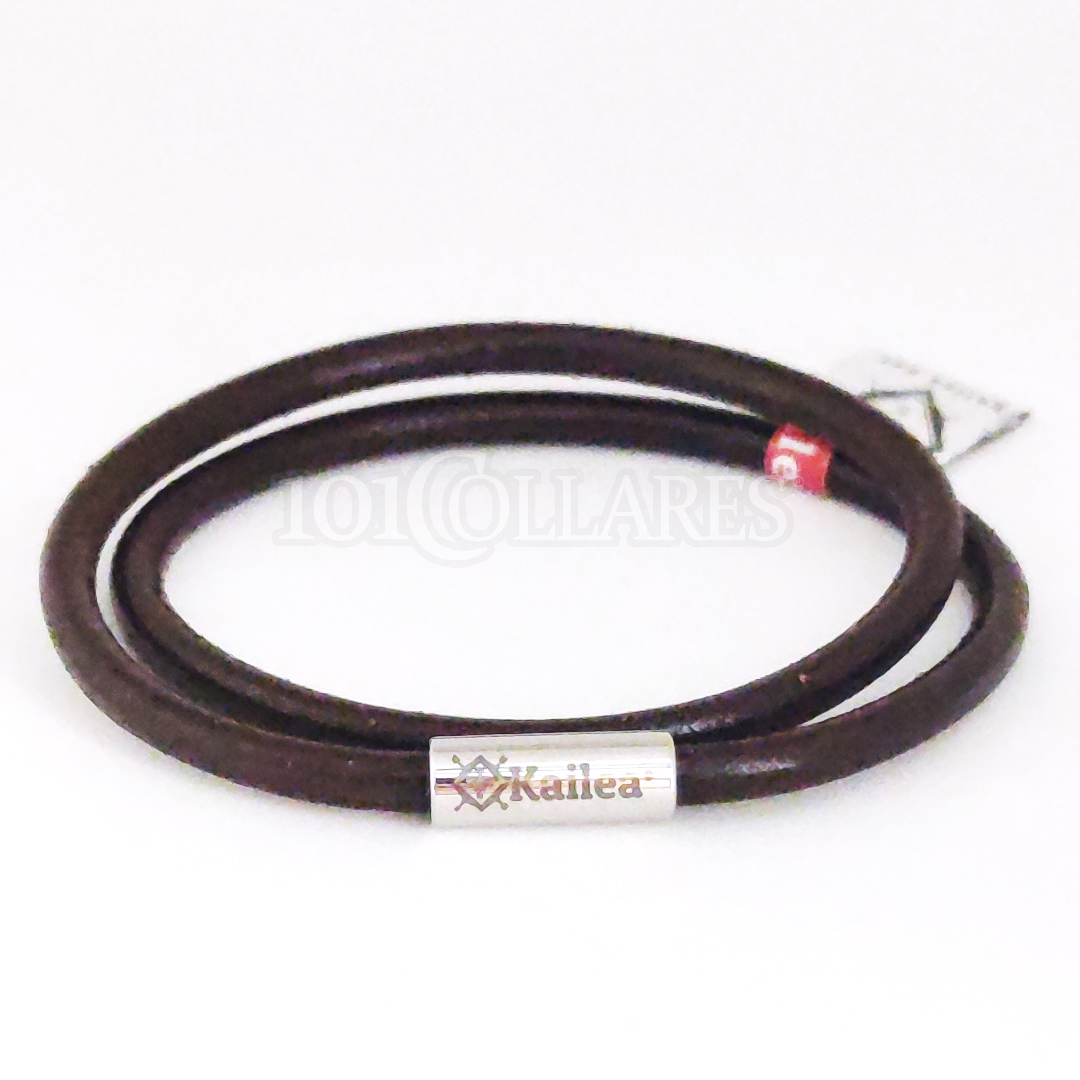Esta es la pulsera Kailea Marine hecha de cuerda sintética compuesta por una cubierta de polipropileno que es la que muestra los diferentes motivos o colores, y por un núcleo único de múltiples filamentos también del mismo material. Cuenta con un tipo de cierre magnético de acero inoxidable 304 con diferentes acabados: pulido, negro brillante o dorado brillante. Está pensada para dar dos vueltas en la muñeca y puedes escoger tanto el motivo-color del cordón como el acabado del cierre y por supuesto tu talla. Al lado de ésta última, en el selector, verás también la longitud total de la pulsera, recuerda que da dos vueltas.